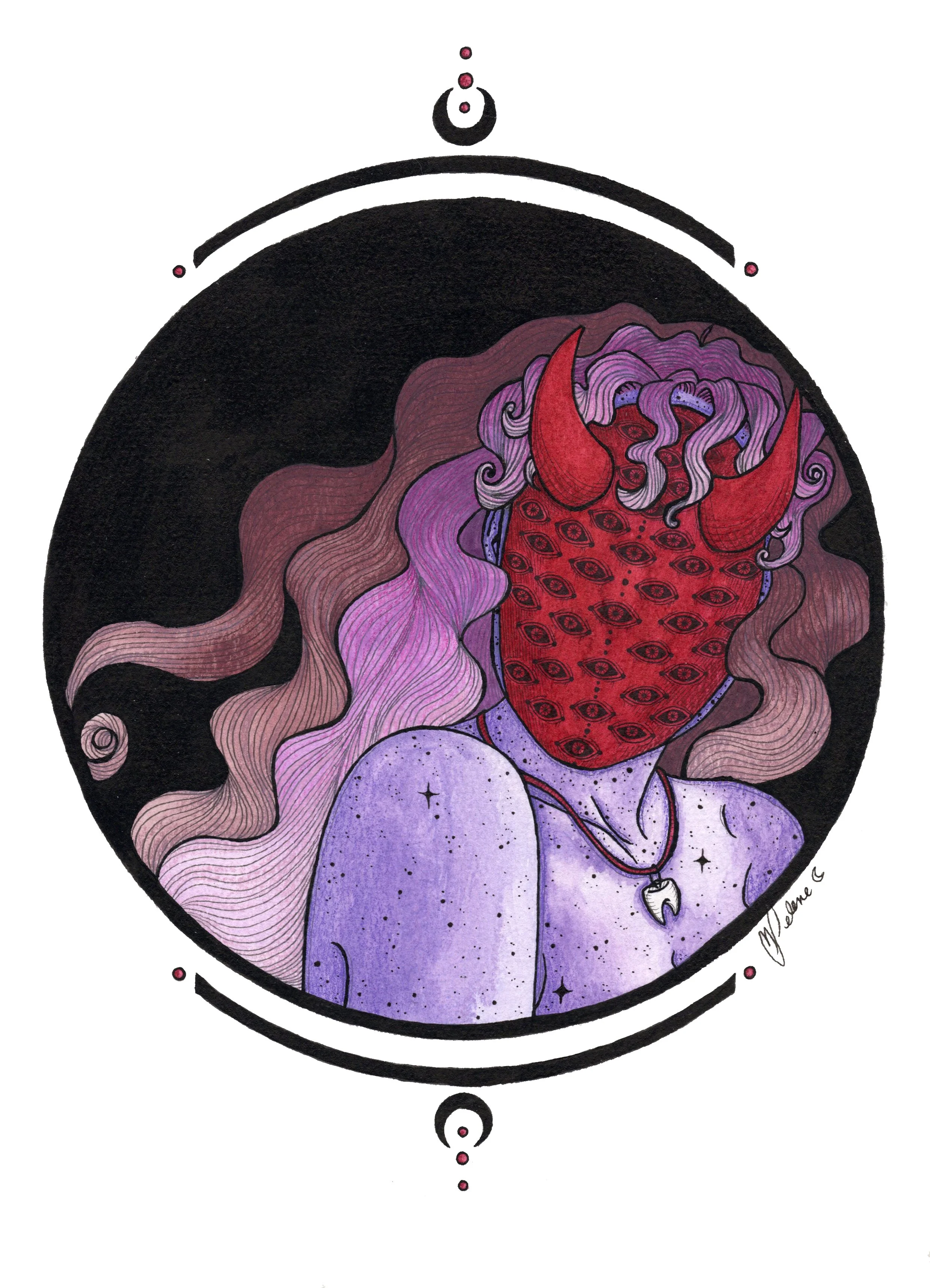 My name is Selene. I am shy bush folk. I learned to draw and paint when I was a child by emulating my godfather, who was, and still is, an amazing artist. When I wasn’t drawing, I was lying under the trees reading one of the illustrated fairy tale books that I loved. I’ve formally studied literature, folklore, mythology, and psychoanalysis, as well as concurrent disorder treatment. All of these things inspire the detailed symbolism I put into every drawing that I do.