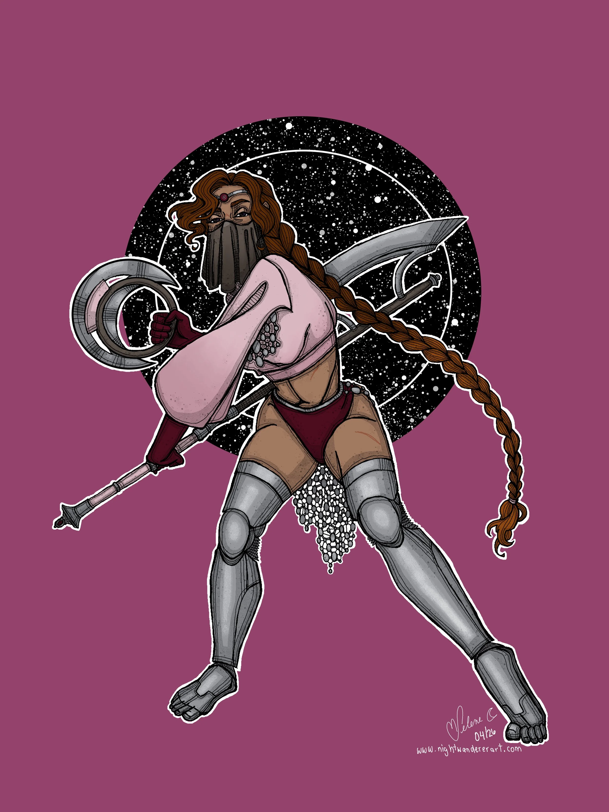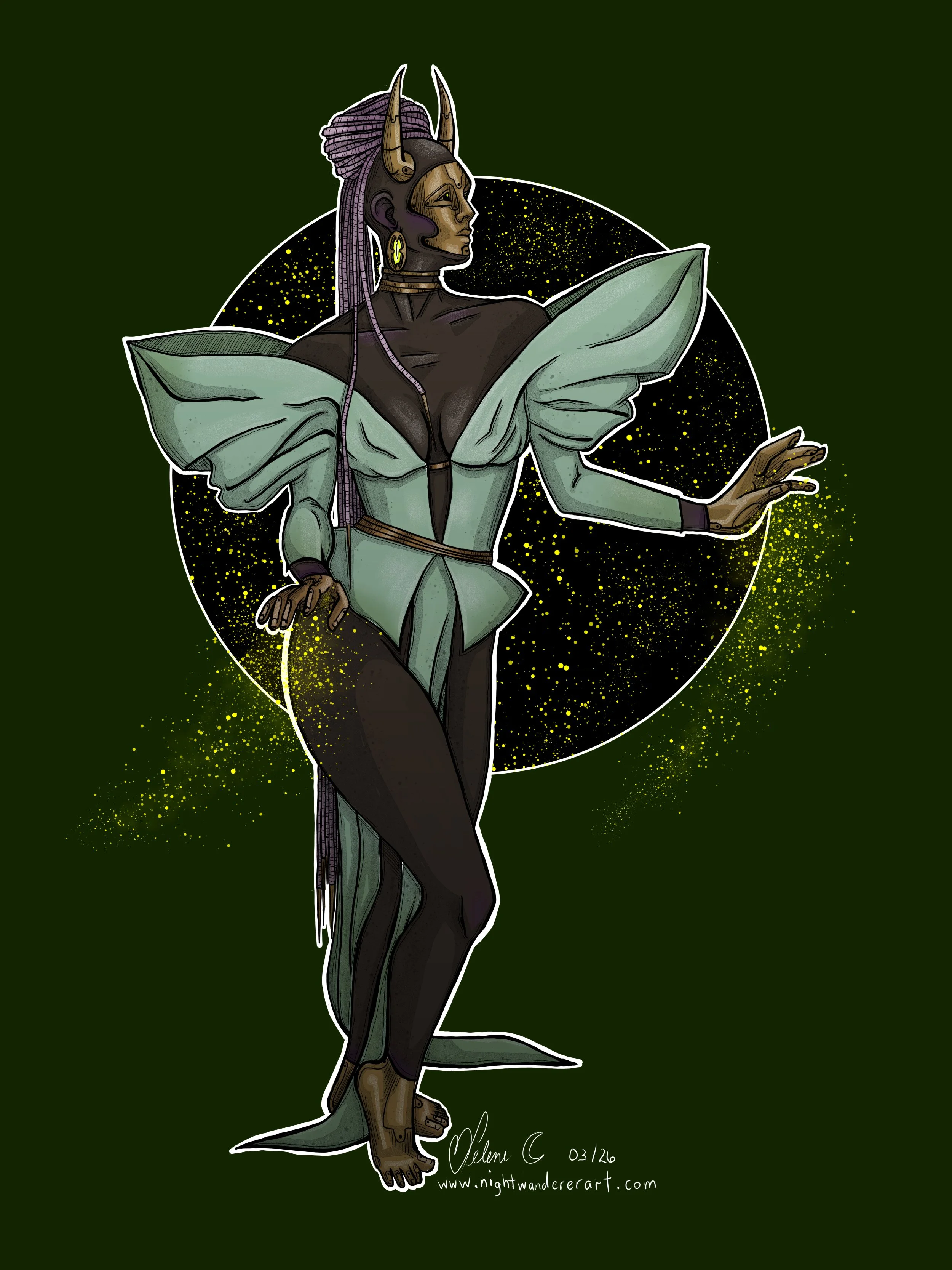 Backstory: Gironima was the daughter of a corporate CEO’s palace servant on one of the luxury worlds. She was a disobedient child who was regularly disciplined by house security and she was an equally difficult teenager. When it was rumoured that the CEO ordered for Gironima to be taken away to a convent of the Green God the servants conspired and quickly snuck Gironima into the underground sewer systems to live amongst other social rejects with no other options. By the age of nineteen, Gironima had developed an immaculate product line of beauty products and she confidently resurfaced for the first time in four years and surrendered herself to the CEO. Her beauty products rewarded her with a Small Merchant license, thanks to the support of much of the CEO’s harem. Gironima has not only continued to thrive with her beauty supply business, but she’s developed connections with members of the entourages of capitalists across the Galaxy and has managed to establish a business carefully hidden with her beauty supply business involving the selling of poisons to vengeful members of these entourages.