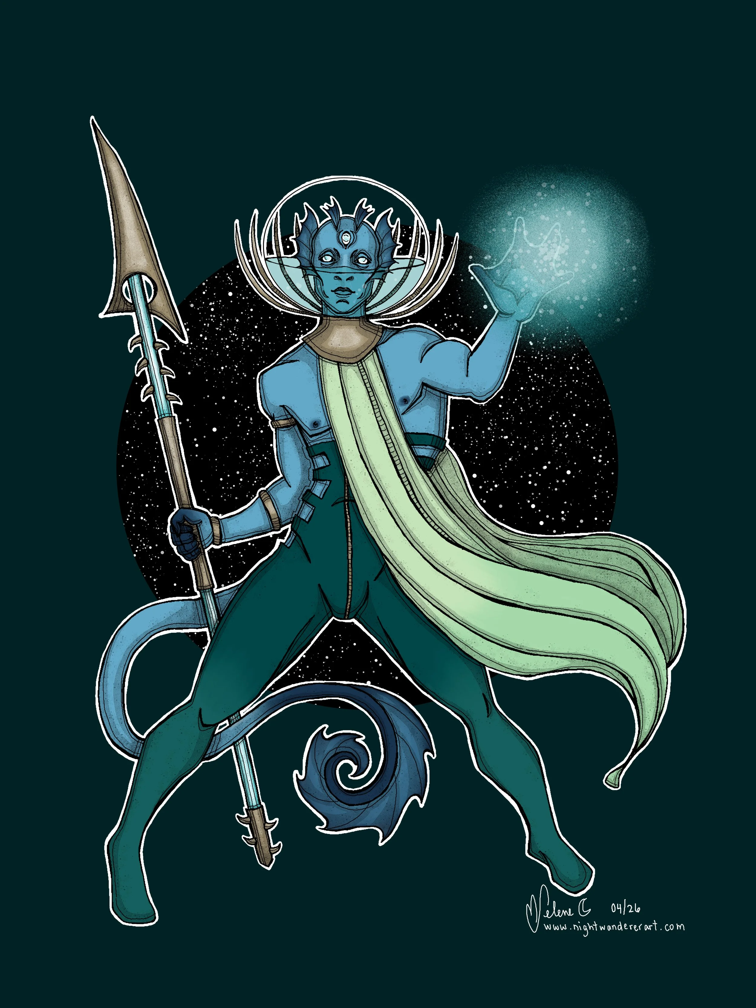 Backstory: Kiyan was born with a third eye and an aptitude for unique magic. It’s a rare occurence, but oracles have been recorded throughout Hydran history. Oracles are automatically adopted into a special Order of the Sighted where they spend their formative years learning how to use their powers. Oracles have visions of the future (often with the use of tools like cards or bones to assist in clarifying visions - potentially a series of in-game fortune telling games), voices that can alter the moods of others through song, oral storytelling, or the recitation of poetry, and water related magic (including cold/ice). Oracles are trained to be entirely free of judgment and personal ideology. They live in the service of anyone who calls upon them to provide their services, travelling around fulfilling requests for fortunes told, moods altered, and whatever assistance their water magics might provide. It’s a very lonely life but Kiyan performs his duties as he is too fearful and anxious about breaking from the path laid out for him since birth.