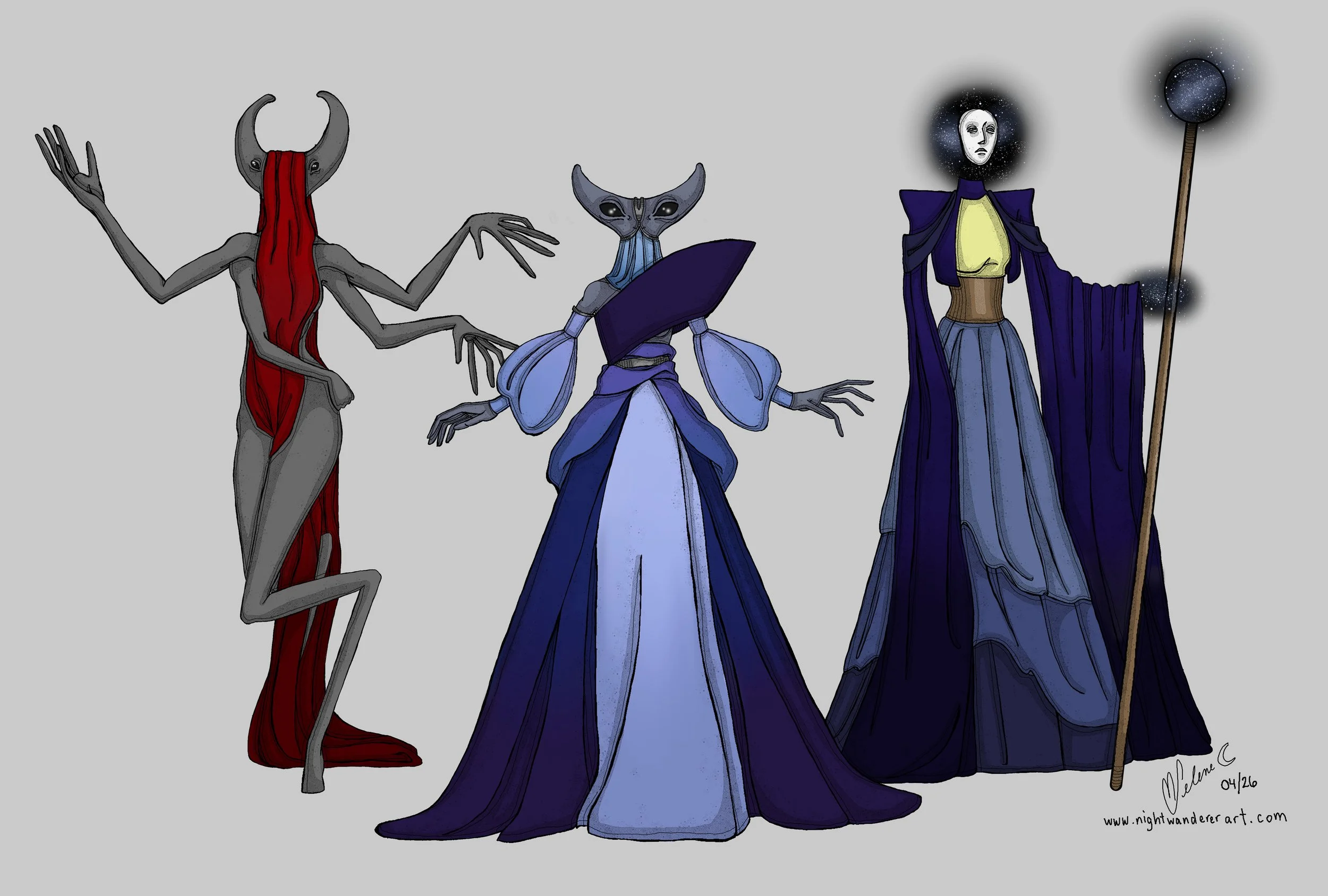 I have three different concepts for Mother Z. I wanted to do something related to the classic grey alien but with a more dramatically shaped head. But I also like the idea of a totally invisible being. Mother Z is a figure representative of the various incarnations of Fates, which is very typically a triad. So all three would be in the game in some capacity but only one is Mother Z and the other two are minor background figures who are probably only mentioned and never play an active role. Ideally, the player would be able to choose their Mother Z out of the three.